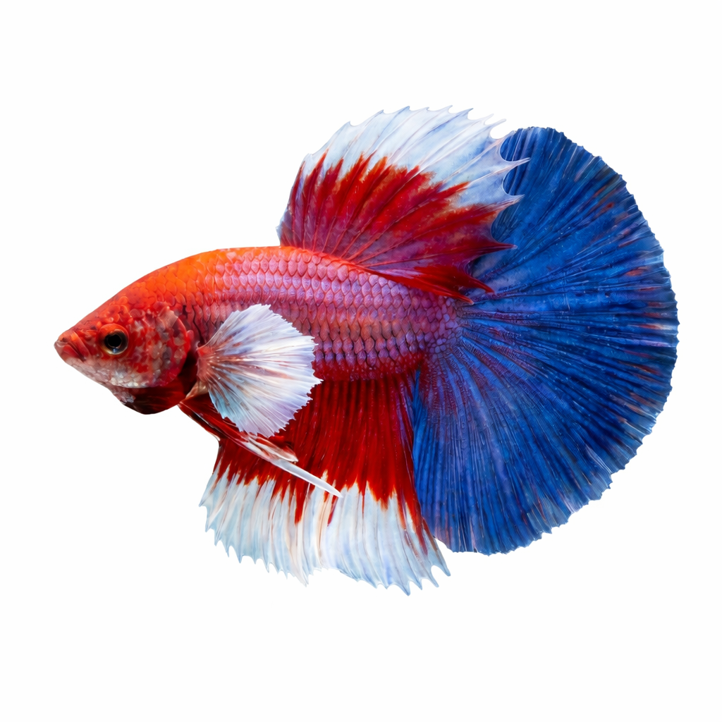 The Thai Flag Full Moon Betta is a visually striking variety inspired by the colors of Thailand’s national flag. Featuring a clean white base accented with bold red and deep blue bands, this Betta delivers exceptional contrast and balance. When flared, the caudal fin opens to a near-perfect 180° Full Moon spread, creating a dramatic and elegant display.